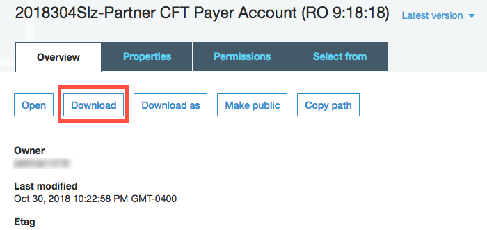 Open the S3 bucket containing the CloudFormation templates and select the new modified template. Copy the template link.