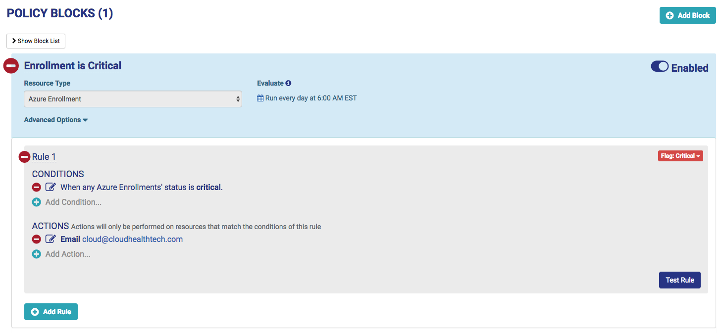 Sample Critical Enrollments Policy: This policy identifies when enrollments are expiring in the next 30 days and sends a notification to a user.