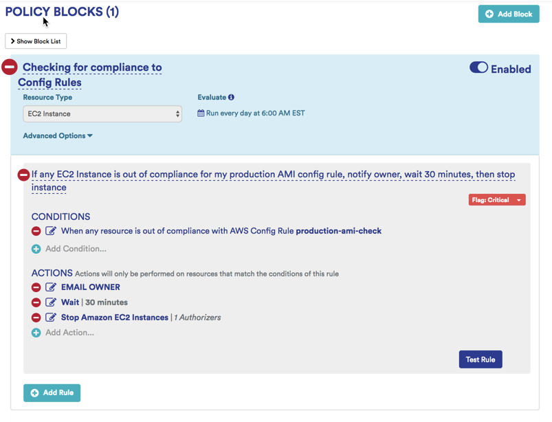 Sample Best Practice Policy: This policy identifies any running EC2 instances that do not comply with AWS Config Rules.