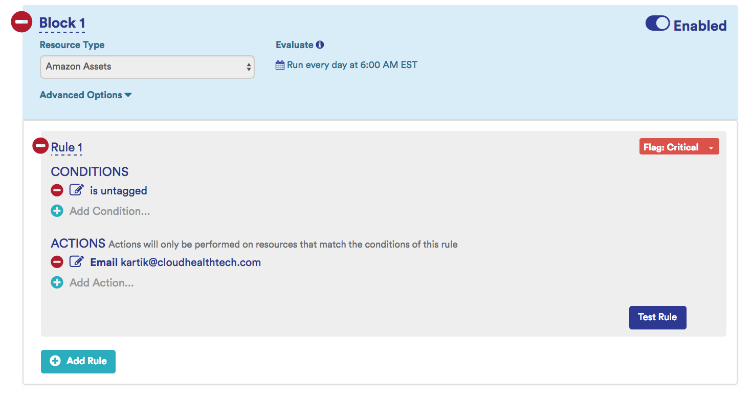 Sample Best Practice Policy: This Policy sends an email alert reporting any new AWS assets that are provisioned without being tagged.