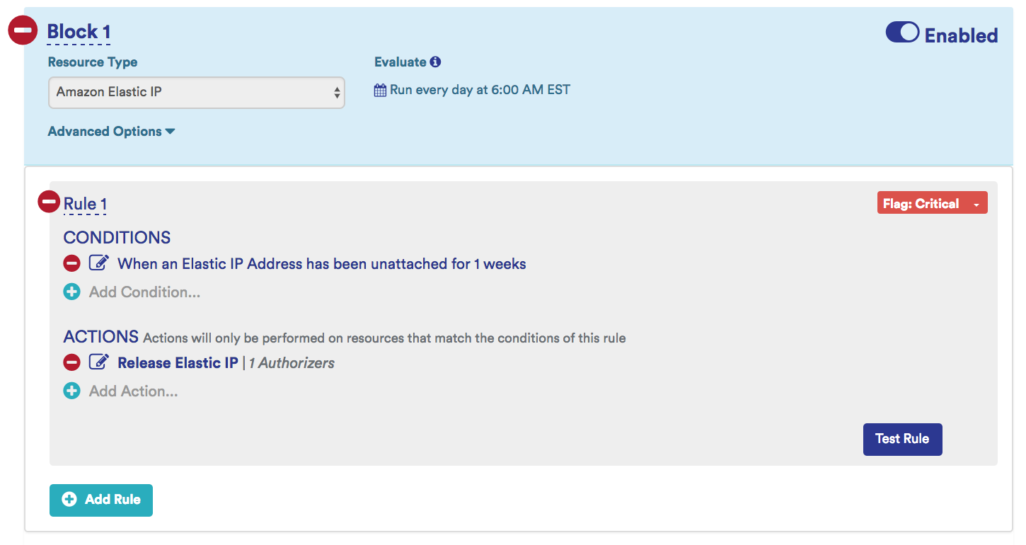 Sample Release Disassociated Elastic IP Identifying Policy: This policy identifies disassociated EIPs that exist for more than 1 week and send a notification and releases them.