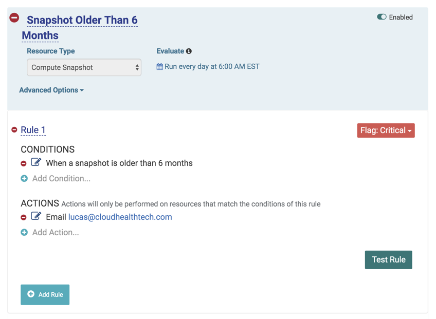 Sample Old Snapshot Identifying Policy: This policy sends a notification when it identifies potential zombie compute snapshots that are older than 6 months.
