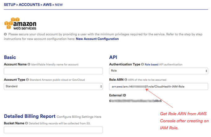 Return to the AWS Account Setup page in the CloudHealth platform. In the API section paste the Role ARN value.