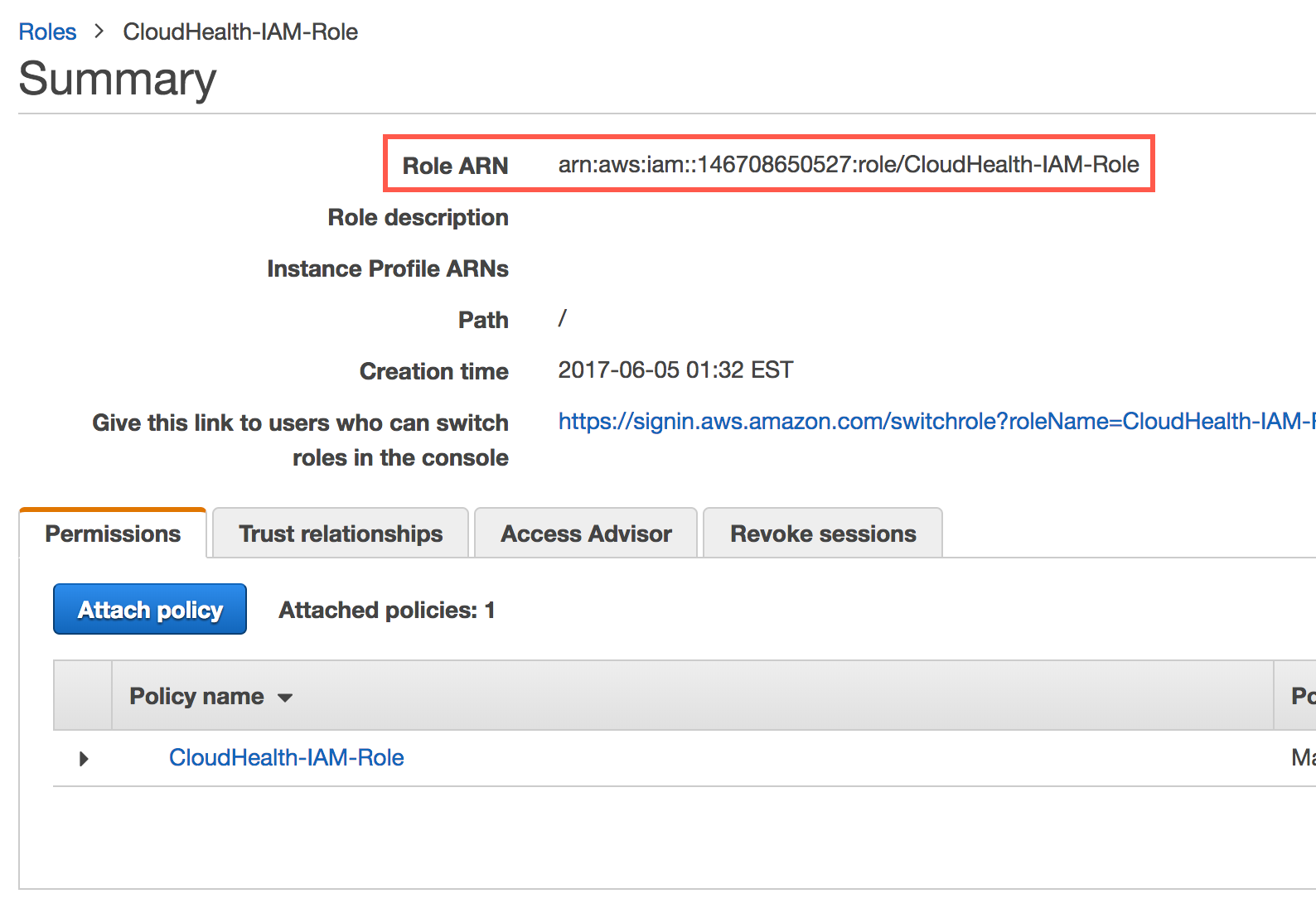 Click Create role. From the Role Summary page, copy the value of Role ARN to the clipboard.