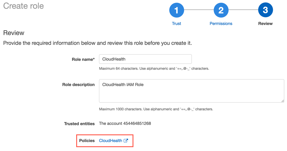 Account ID: Enter 454464851268, which is the ID of the secure CloudHealth-managed account.