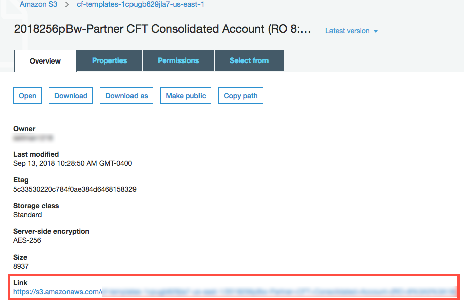 Select the appropriate CloudFormation template for the customer's AWS account and copy the Link in the Overview tab.