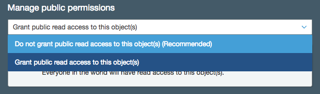 In the Manage public permissions field, select Grant public read access to this object(s) from the dropdown. Click Next.