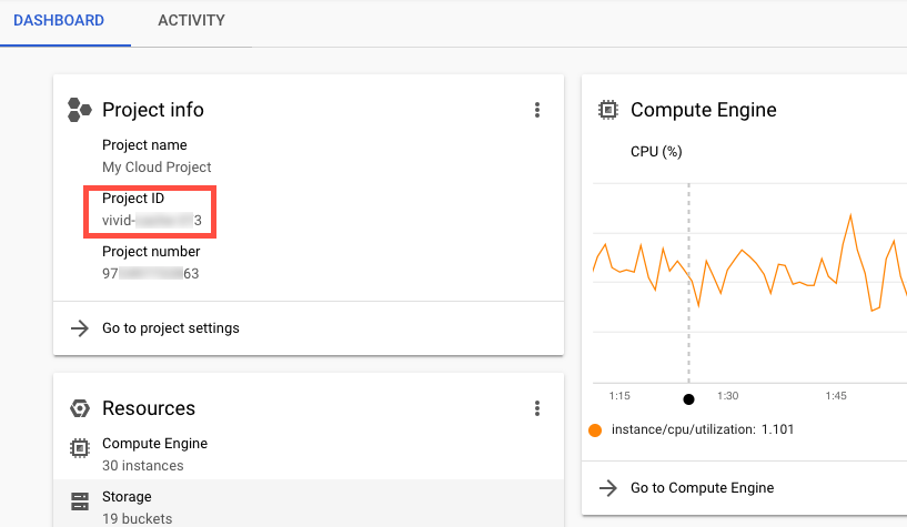 The project ID is located in the Project Info pane of the Dashboard in the Google Cloud Console.
